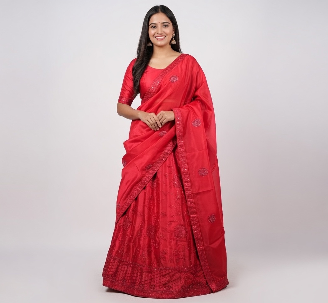 This lehanga set provides a complete solution for festive and special occasions, offering an easy way to achieve a coordinated traditional look. The set includes a comfortable blouse, a full-length flared skirt, and a matching dupatta, ensuring you stay stylish and covered from every angle. The smooth fabric allows for all-day wear without discomfort, while the vibrant red color highlights your presence at any gathering. Ideal for weddings, celebrations, and family functions, this lehanga set saves time spent on mix-and-match hassles and lets you focus on enjoying your event.