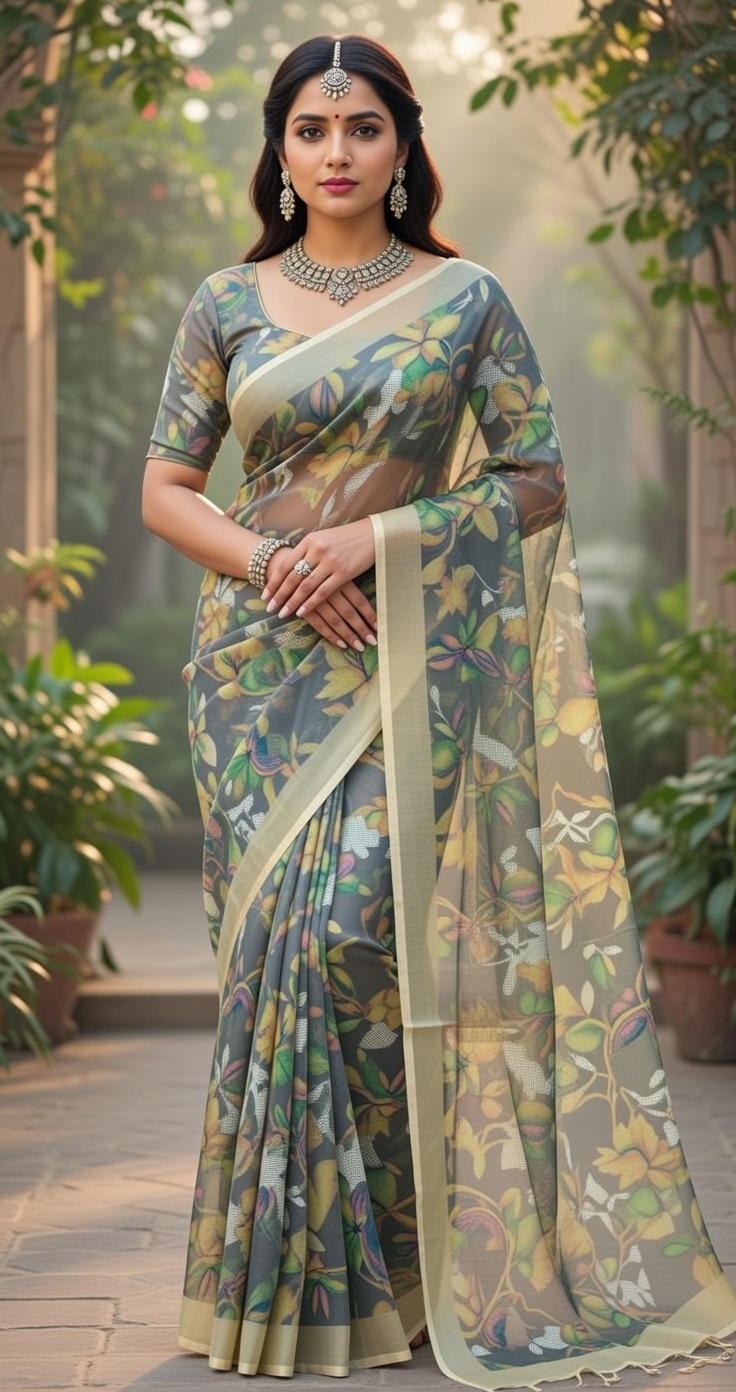 This saree with blouse offers a convenient, complete solution for women seeking effortless style for any occasion. The lightweight fabric ensures all-day comfort while the elegant floral design brings a sophisticated look without the need for extra accessories. The included matching blouse saves time and effort, letting you achieve a coordinated outfit instantly. Ideal for both formal gatherings and daily wear, this saree with blouse gives you ready-to-wear elegance and versatility, meeting your need for reliable traditional attire.