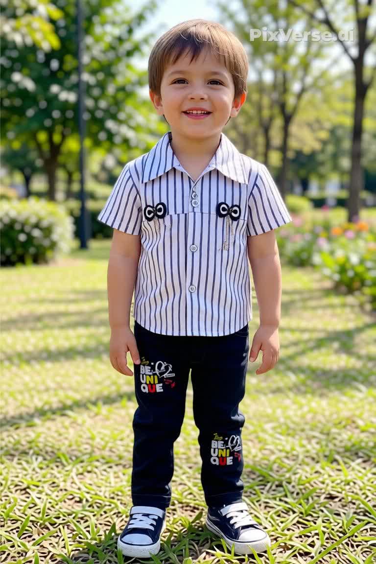 This children’s dress set features a classic striped dress shirt paired with comfortable navy pants, making it an ideal solution for any casual or semi-formal outing. The shirt’s lightweight, breathable material keeps your child cool and relaxed, while the “Be Unique” slogan on the pants inspires confidence in your little one. Easy to wear and move in, this outfit fits seamlessly into active lifestyles both indoors and out. Designed for durability and simple care, it helps parents minimize hassle and maximize their child’s comfort and style. A dependable dress set that meets the everyday needs of growing kids.