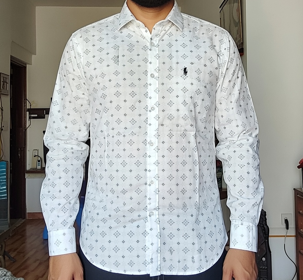 Men’s White Patterned Long Sleeve Shirt